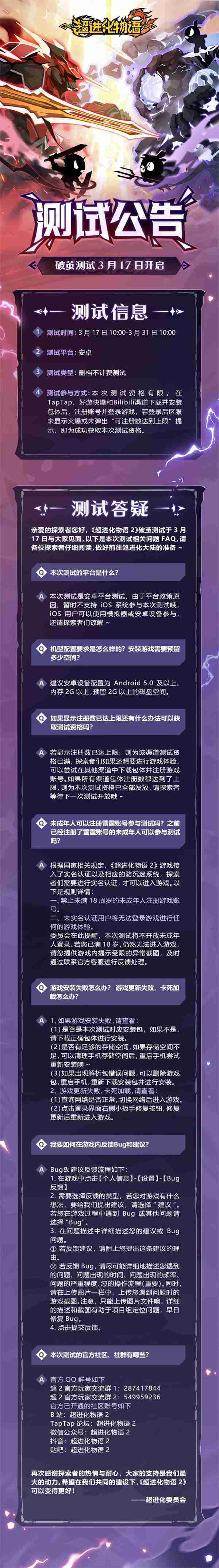 《超进化物语2》首次限号不计费删档测试——「破茧测试」将于3月17日开启,,随我们确认测试细节,,,,明天迈出踏上超进化大陆的第一步吧!!